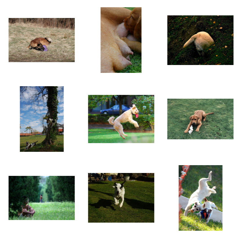 질문 (query)으로 "one dog sitting on the grass"를 입력하자, 모델은 아래와 같이 query에 적절한 이미지들을 검색함을 확인할 수 있습니다.